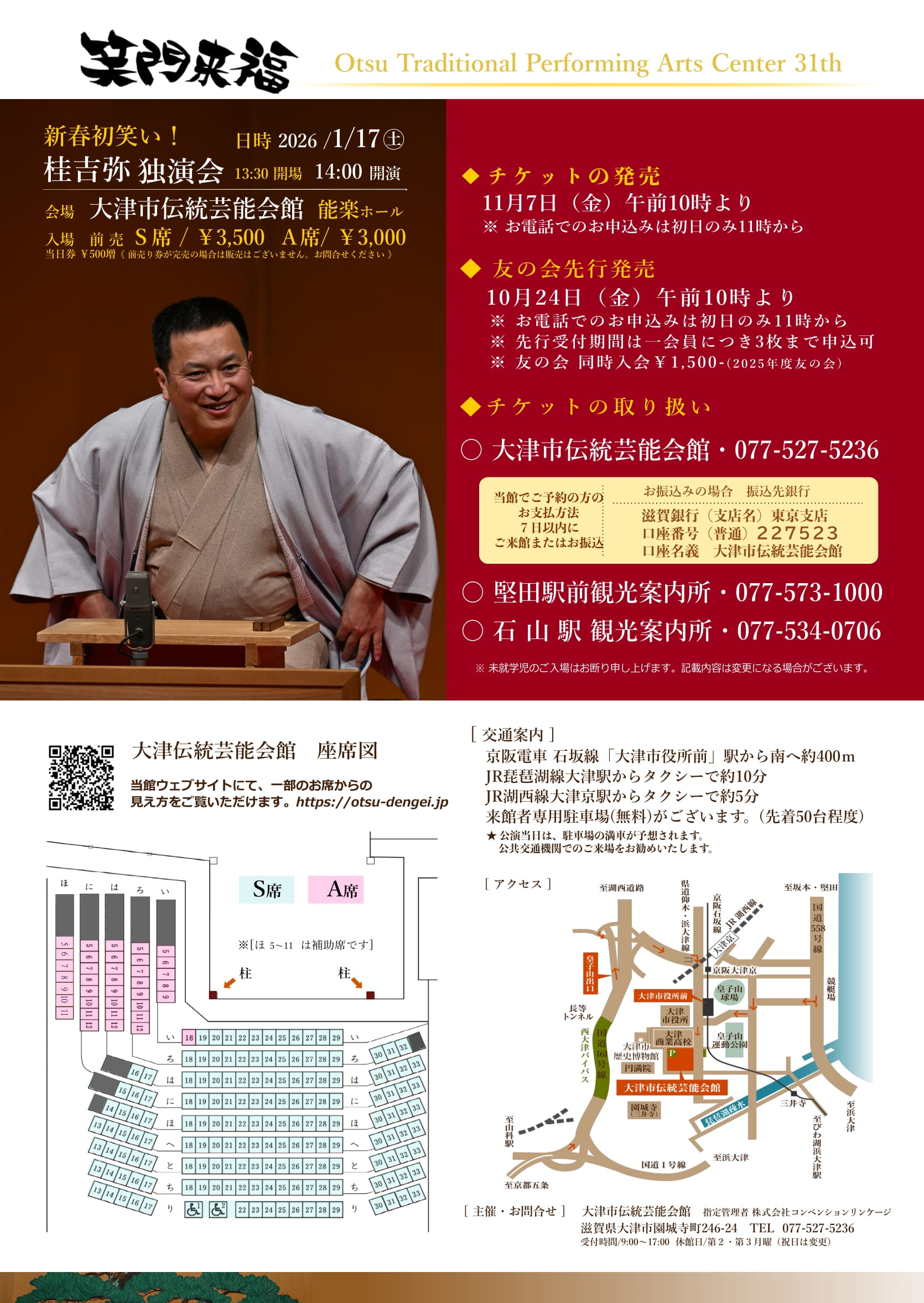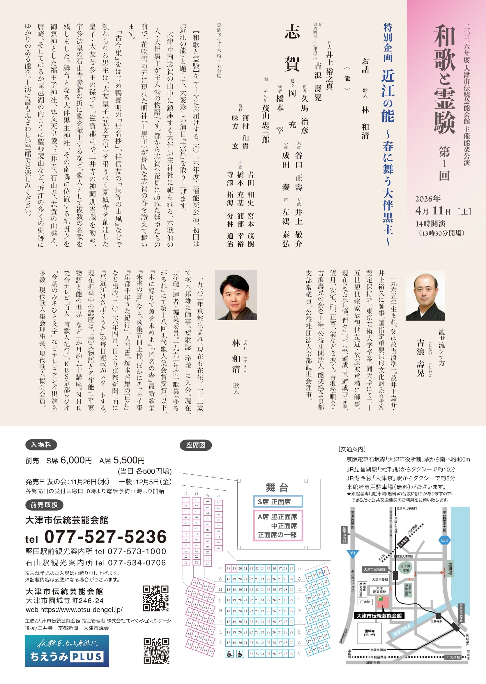 堅田駅前観光案内所 TEL. 077-573-1000 ※取扱のない公演もございます。チラシをご確認くださいませ。