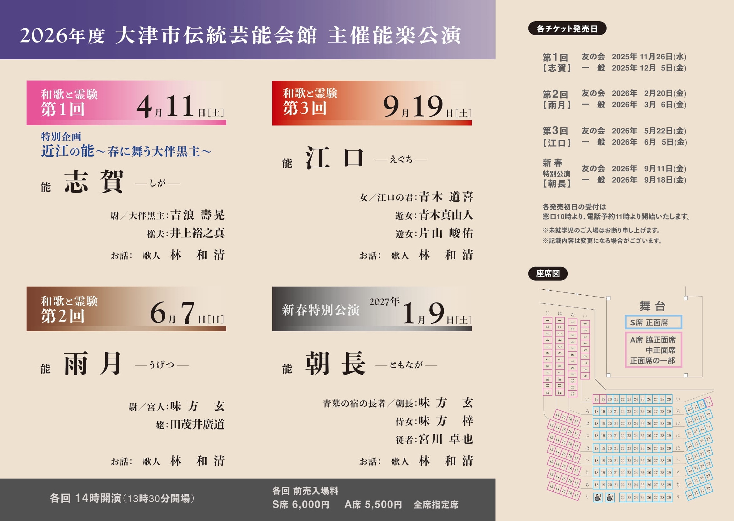 石山駅観光案内所  TEL. 077-534-0706 ※取扱のない公演もございます。チラシをご確認くださいませ。